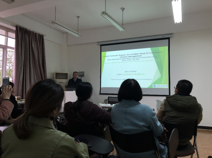 为进一步拓展学术思维,创新学术研究,交流分享学术成果,经贸外语学院商务英语与跨文化研究中心师生于11月19日下午在通博楼C401学院会议室举行了本学期的学术沙龙活动。本次沙龙活动由经贸外语学院邓一恒教授主持,邀请学院副院长张家瑞教授以“Leader-Follower Guanxi: An Invisible Hand of Cronyism in Chinese Management”为题作经验分享。