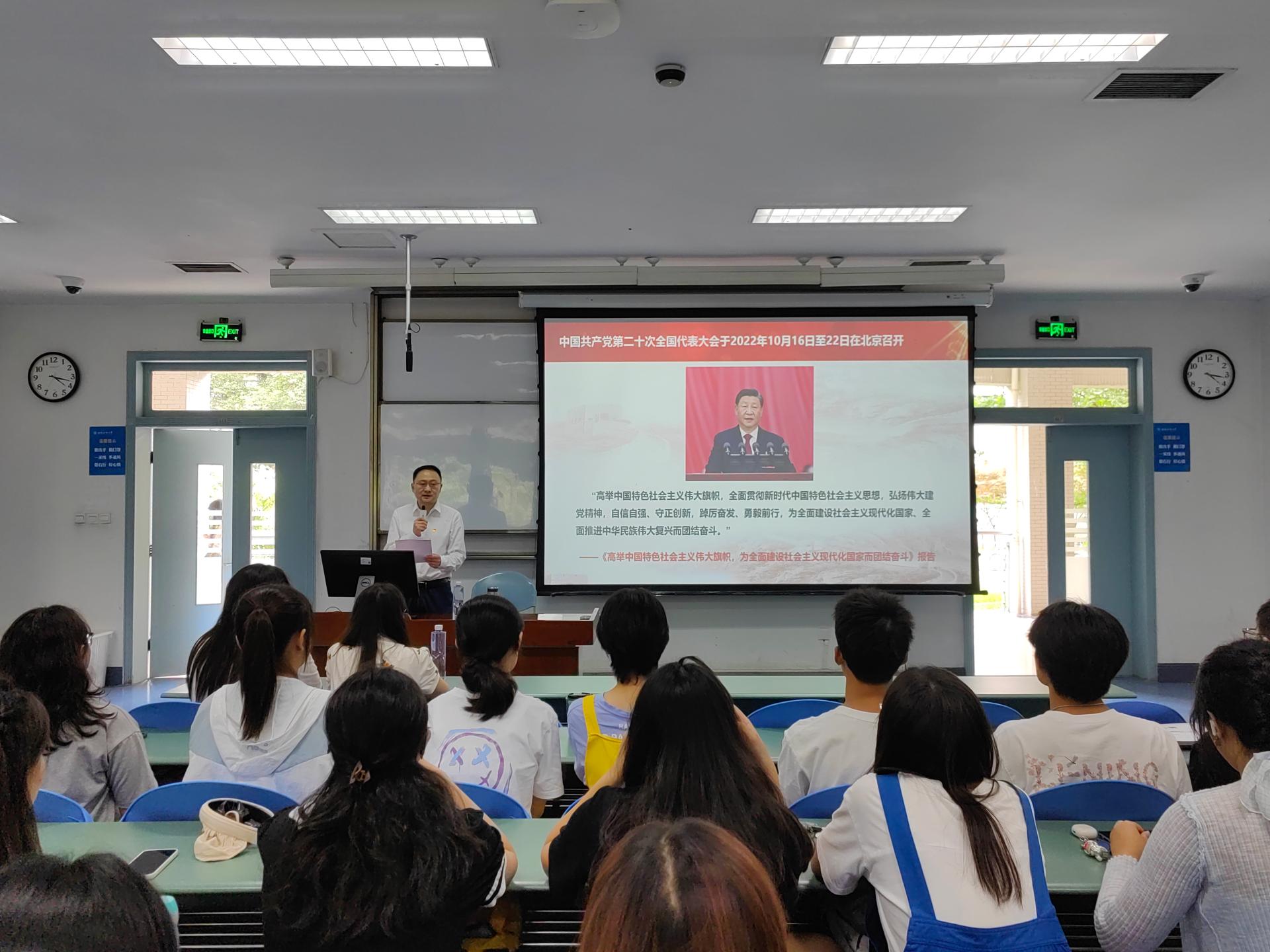 张家瑞以“深刻把握党的二十大的主题、成果和意义 奋力写好中国式现代化教育西财篇章”为主题,从党的二十大的主题、成果和重大意义以及新时代高等教育十年改革发展成效、新时代十年西南财大书写的精彩篇章五个方面给同学们进行了深入浅出地讲解。