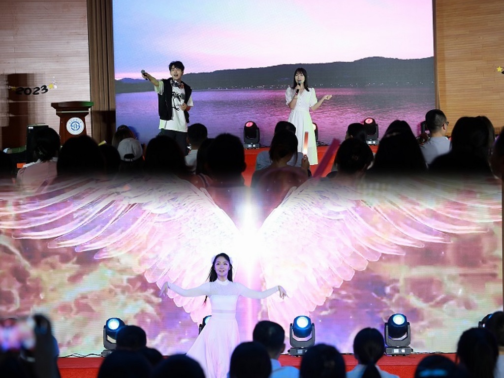 开场歌曲《我的声音》,悦动飞扬,掀起了晚会的首波浪潮;舞蹈《浮光》《孙悟空Super》《Talk that talk》或柔美,或动感,展现了毕业生的绚丽风采;歌曲《一笑倾城》和《入海》分别诉说了对青春时光的留恋和对未来的畅想——“跃入人海,各有风雨灿烂”;歌曲《后妈茶话会》《L-O-V-E》以及器乐演奏《Love in the dark》,深入诠释了学子们的青春活力与自信姿态。晚会在学院师生全体合唱的《再见》中圆满落幕,歌曲旋律深情动人,勾勒出四载春夏秋冬,四年青春韶华。