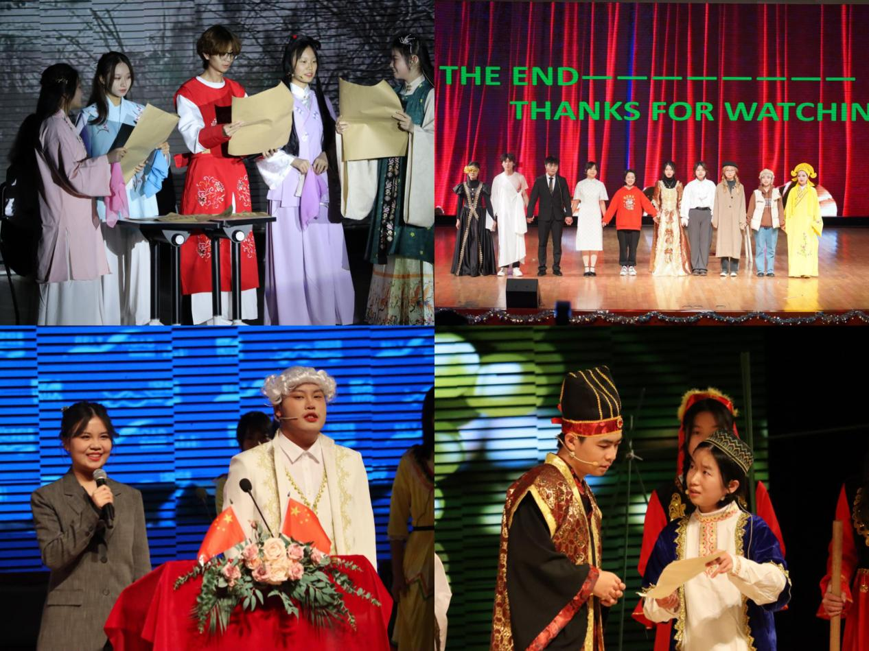 外国语学院《声声》聚焦传统文化-皮影戏的传承与迷失,青年由随波逐流到创新传承,是内心的坚守更是对文化的自信。跨越两千五百年的交流,财税学院《古镜照今貌》以今者向老子请教《道德经》为引,向老子、尹喜展现了如今“甘其食,美其服,安其居,乐其俗”的美好景象。人文与艺术学院《单刀赴会》以奥运为背景,一展昔日前辈单枪匹马,独自战奥之伟貌,而今,我们张开双臂,敞开胸怀,深刻诠释命运与共。金融学院、中国金融研究院《新生川剧魂》通过异国他乡的少年对川剧的热爱,诠释了“不忘本来、吸收外来、面向世界、博采众长”的担当与情怀。经济学院《益译生辉》讲述中国才子杨宪益、英伦玫瑰戴乃迭,这对“几乎翻译了一部中国文学史”的伉俪身负译介中国文化的重任,一辈子为弘扬中国文化而孜孜不倦的故事。法学院《尘微深处,一心寓剧》学子们跨越时间,跨越山海,奔赴一场戏剧之旅。古道丝韵金兰谊,一带一路金砖情,国际商学院《梦回丝韵》跟随主人公林梦语创作时的心绪,化梦为实向世界展现中国戏剧,共享文化之美。穿过浩瀚如烟的历史,回眸波澜曲折的故事,数学学院《丝路缘》以丝路为基进行文化交融的表演,继承、弘扬,丝路交流从未停息。