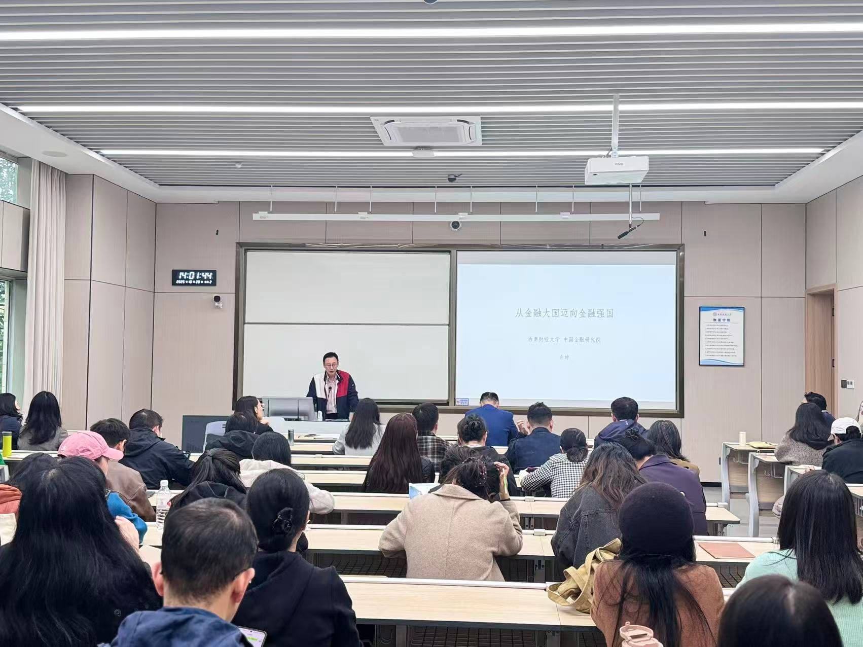 许坤以《从金融大国迈向金融强国》为题,为与会教职工带来了一场内容丰富、论述精辟的专题宣讲。报告首先回顾了我国金融业改革的历程与成就,通过详实的数据与案例,阐明了中国作为“金融大国”的坚实根基。随后,报告重点聚焦2023年中央金融工作会议的核心要义与战略部署,强调了金融工作必须坚持和加强党的全面领导,深刻把握其“政治性、人民性”,并牢固树立“以人民为中心”的价值取向。