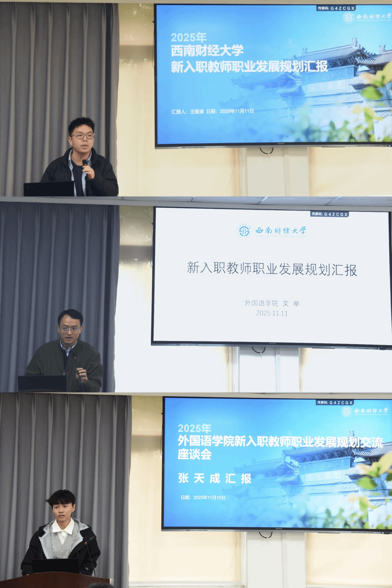 在座谈会的核心环节,三位新入职教师详细汇报了个人职业发展规划,相关职业辅导人给出了精准指导。三位新入职老师均分享了入职以来的真切感受。并对个人发展进行了科研、教学、社会服务方面的具体规划。