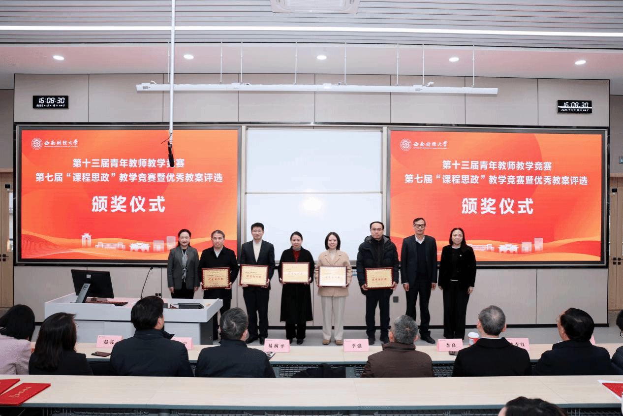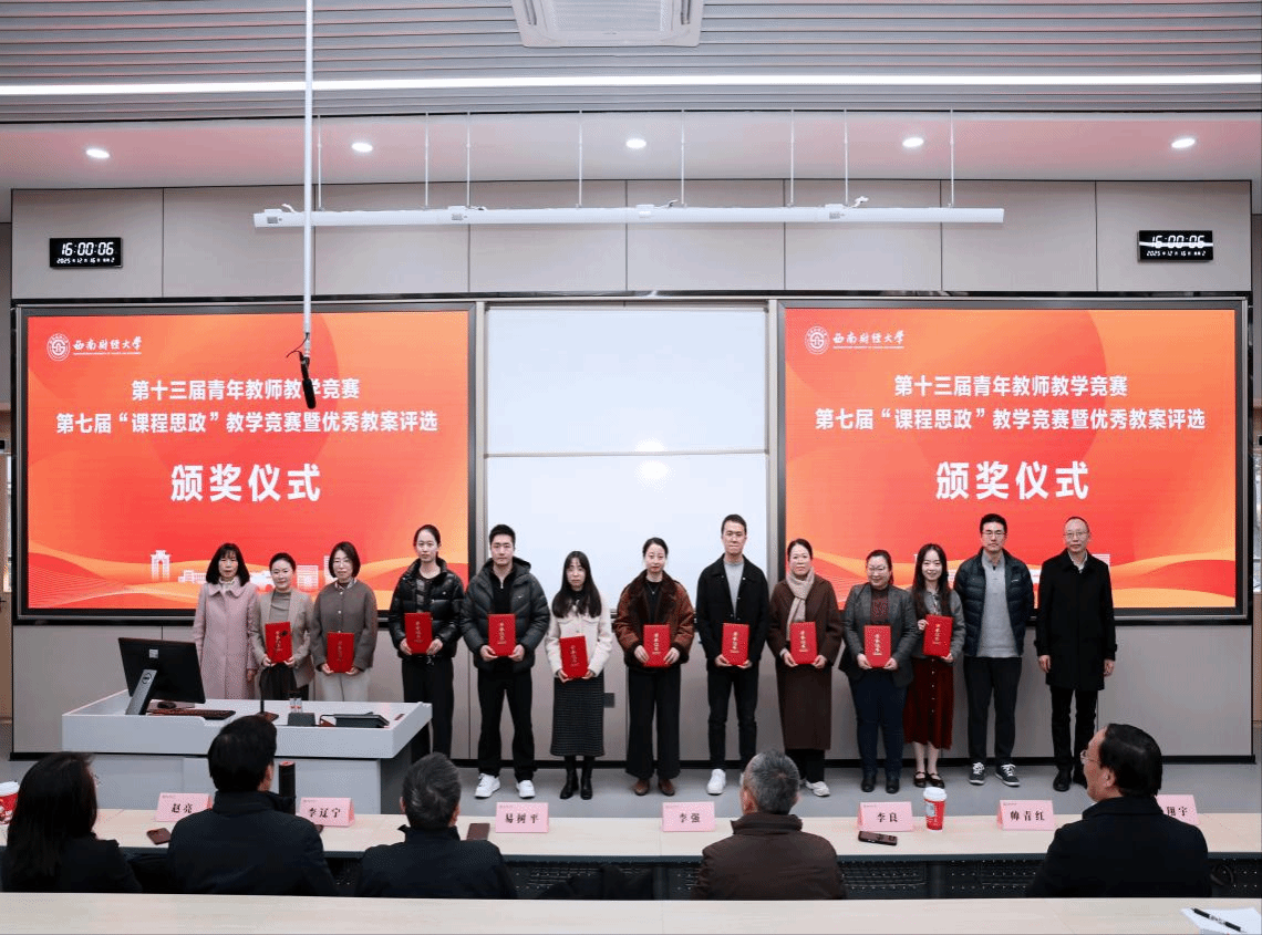 为深入贯彻落实立德树人根本任务,扎实推进教育教学改革,12月16日,西南财经大学第十三届青年教师教学竞赛与第七届“课程思政”教学竞赛决赛在柳林校区举行。学校领导、职能部门负责人及师生代表到场观摩。外国语学院教师在比赛中表现优异,凭借扎实的专业功底、巧妙的教学设计和深厚的育人情怀,荣获一等奖1项、三等奖3项,学院荣获优秀组织奖。