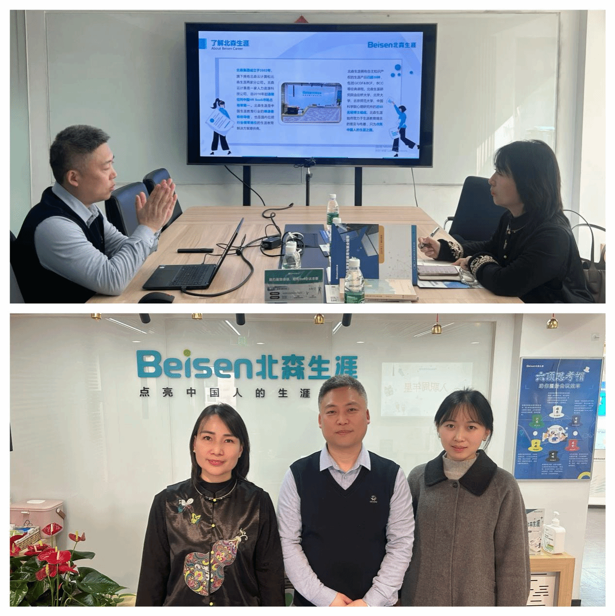 3月18日上午,调研组首站前往北森生涯(北京)科技有限公司,围绕生涯教育体系建设、学生职业规划指导等议题展开座谈。北森生涯作为国内生涯教育领域的领军企业,在职业测评、就业指导平台建设等方面积累了丰富经验。我院重点介绍了外语学科人才培养特色与学生就业需求,双方就共建生涯教育工作坊、引入行业前沿资源等达成初步合作意向,为进一步提升学生就业竞争力奠定了良好基础。