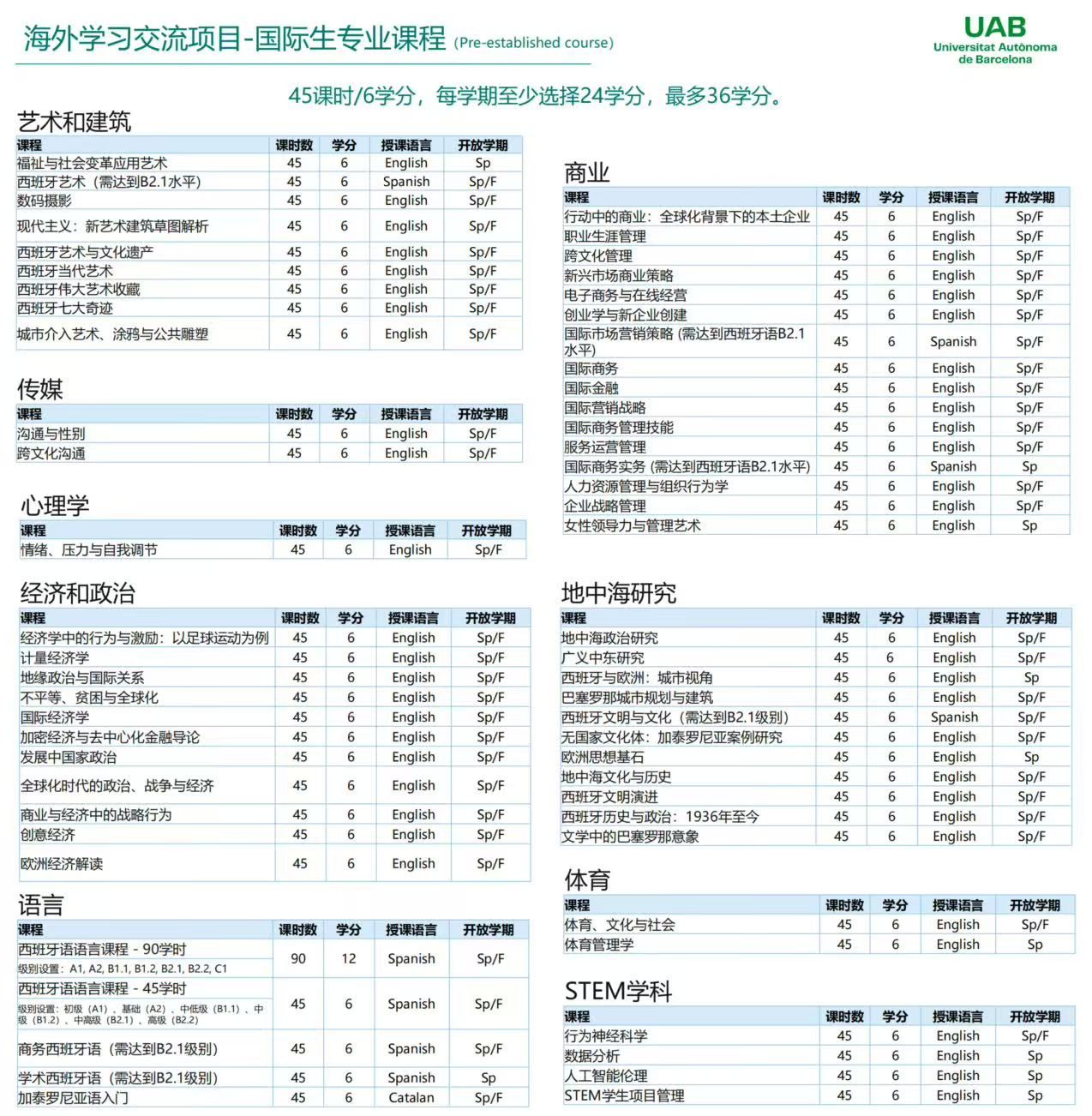 本项目是巴塞罗那自治大学面向全球学生开放的官方交流项目,学生可根据两校合作协议,在读期间前往UAB学习西班牙语语言文化课程或专业课程,所修学分可转回本校学分。